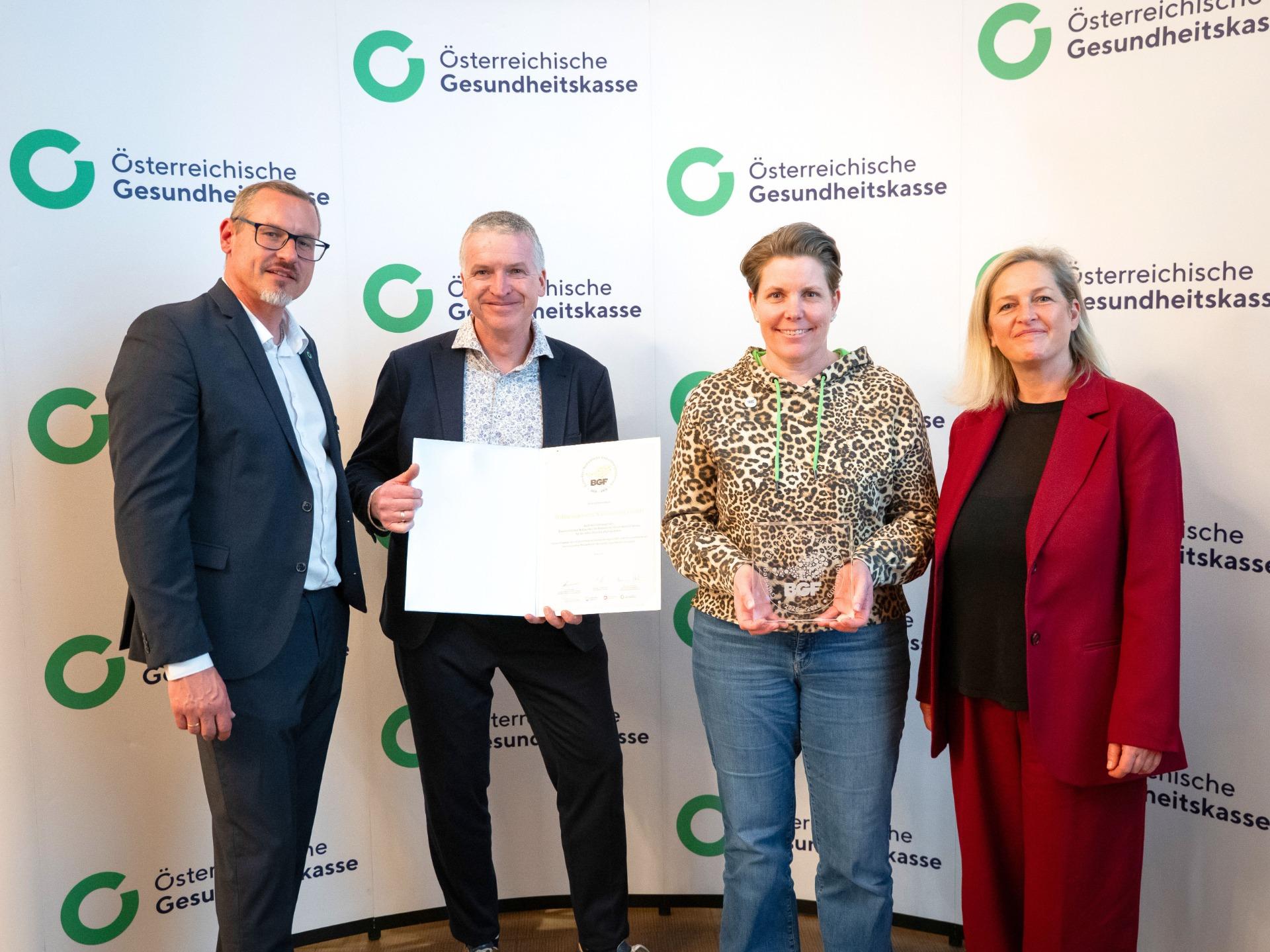 Am Foto v.l.n.r.: Robert Leitner, Thomas und Sandra Knapp, Mag.a Gudrun Braunegger. Fotocredit: ©ÖGK/Mauro Vitera